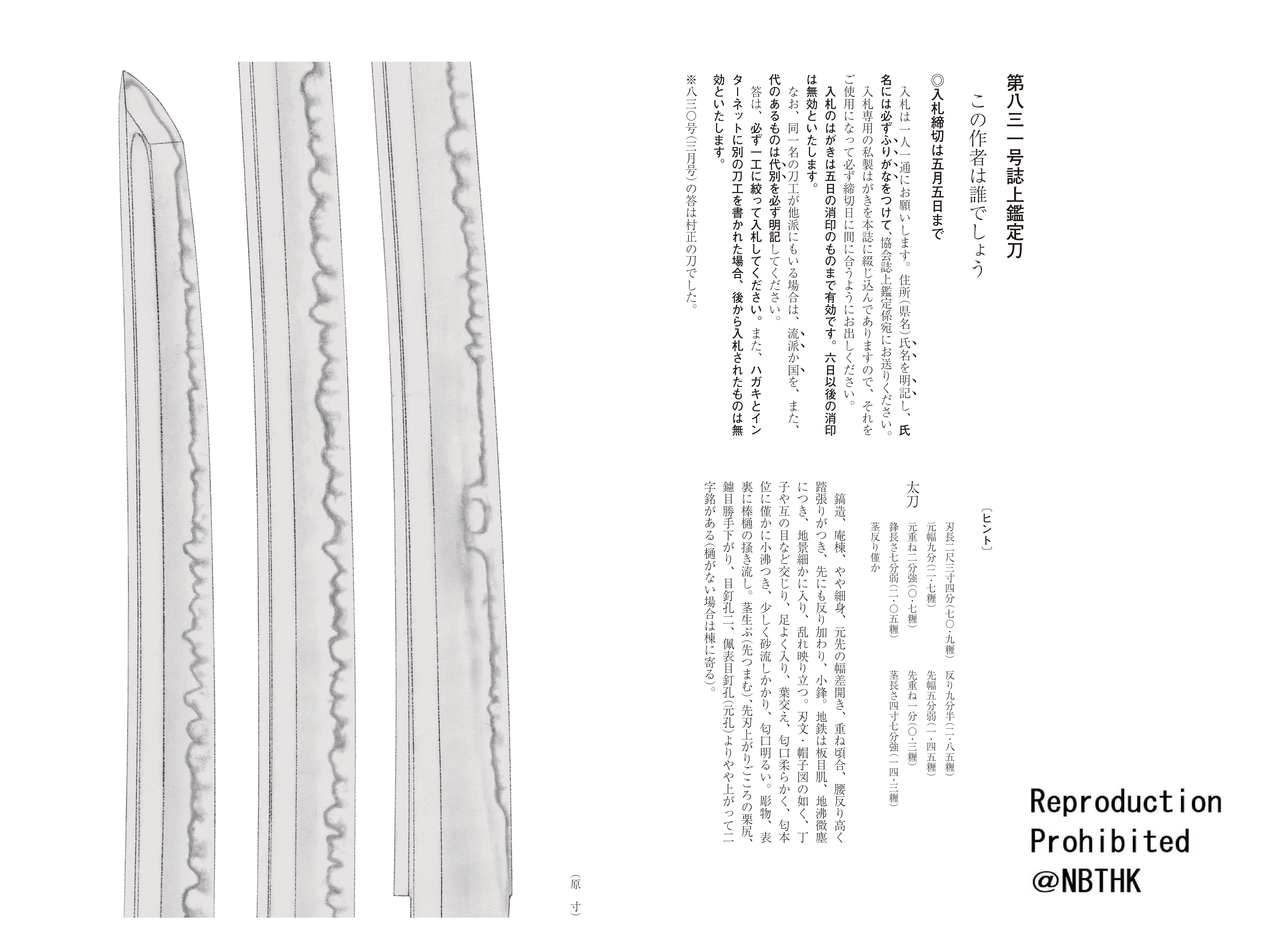 The answer for the February Shijo Kantei To is a katana by Izumi no Kami Kaneshige.