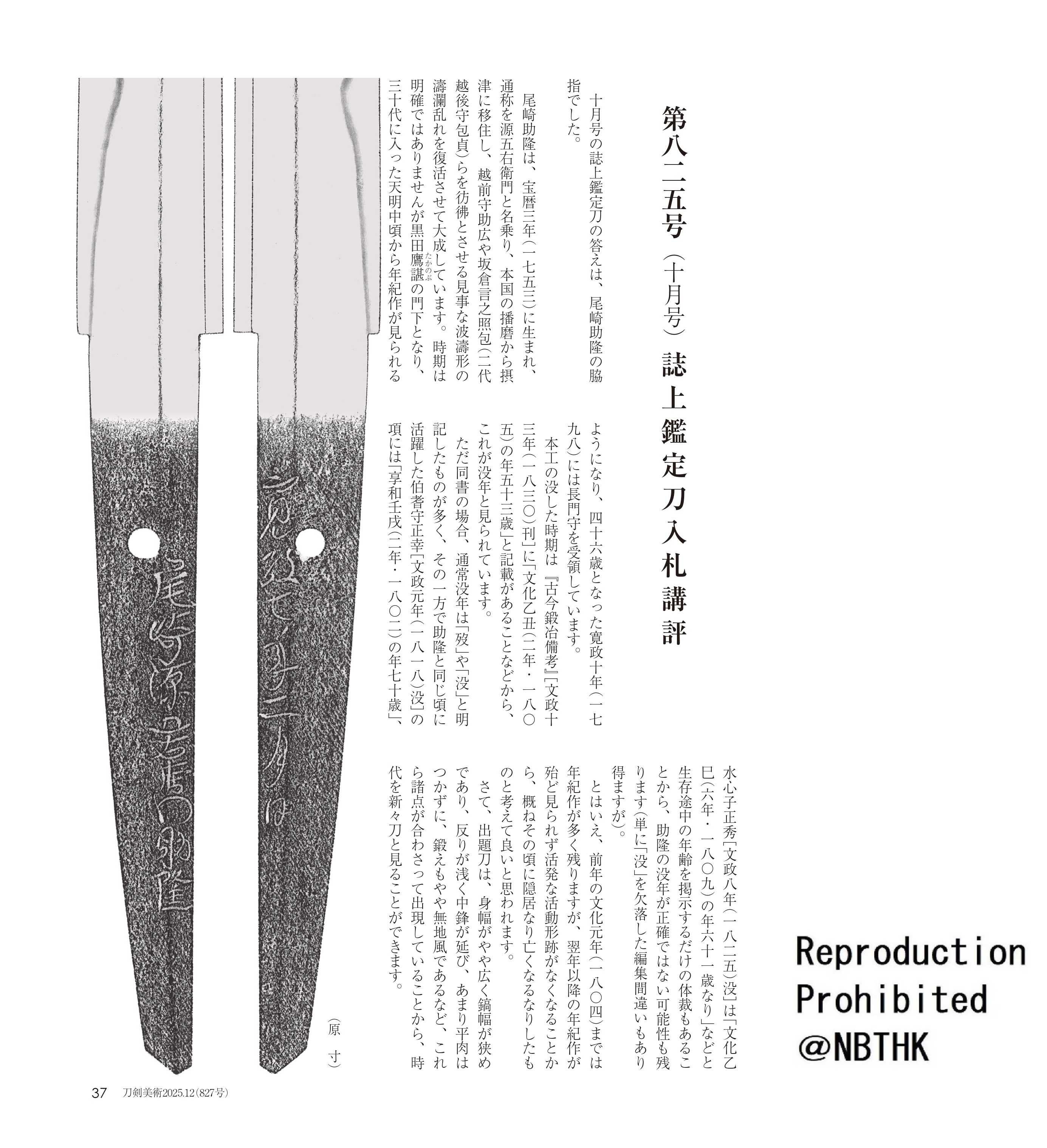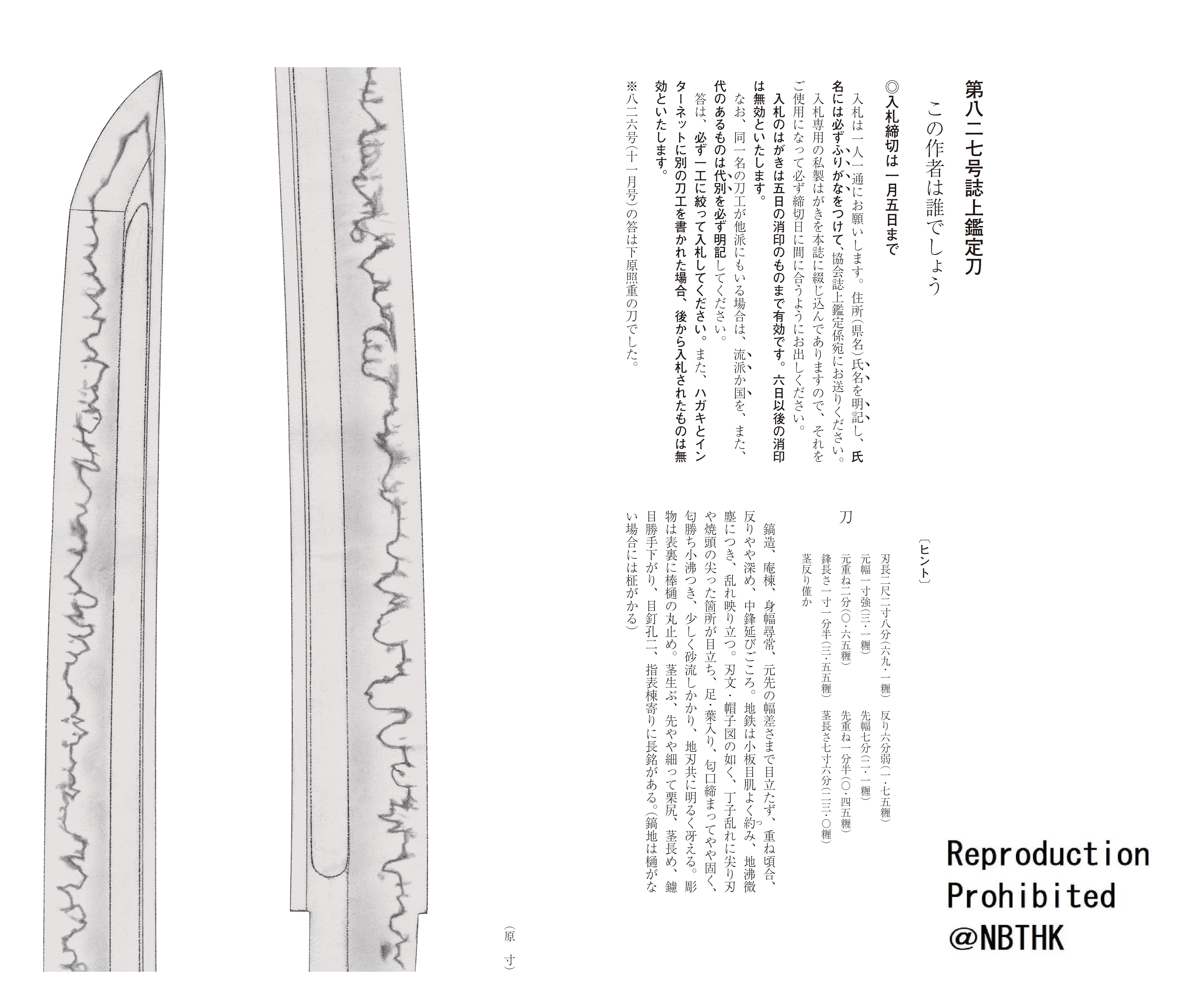 The Answer for the October Shijo Kantei To is a wakizashi by Ozaki Suketaka